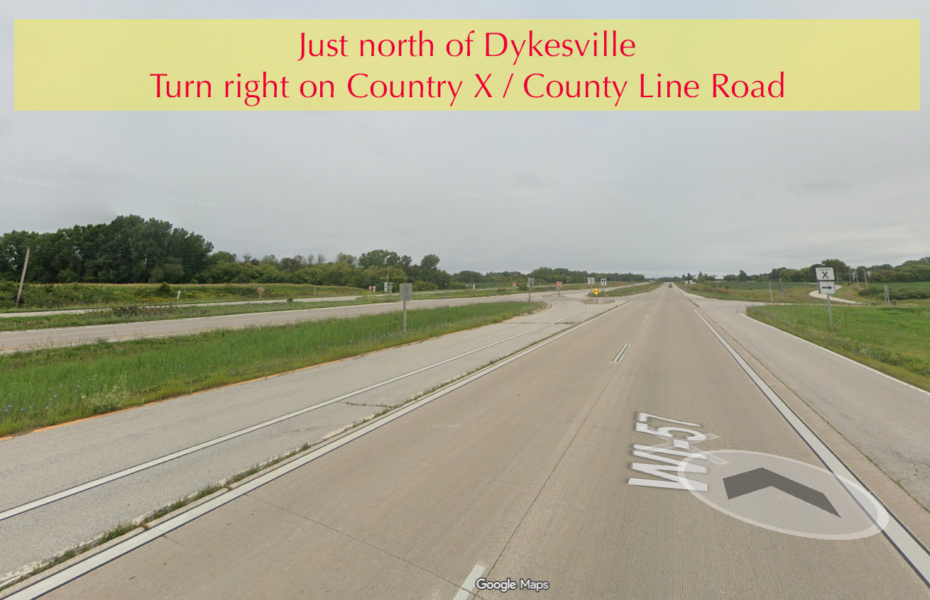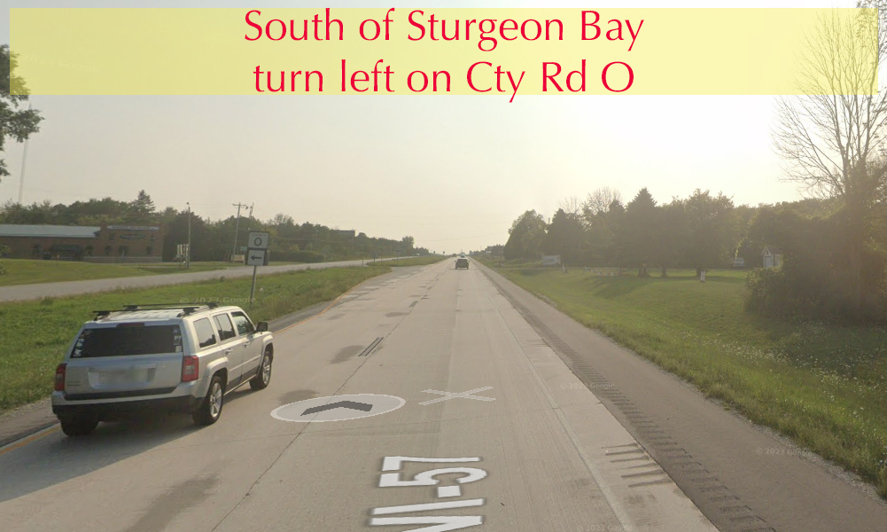 - North of Forestville: If you are traveling from the north, you will exit Highway 42 County O, and follow until you get to Country J where you will turn right. NOTE - Country O has a right-hand turn that intersects with County H. Make the turn and continue to follow to County J.
