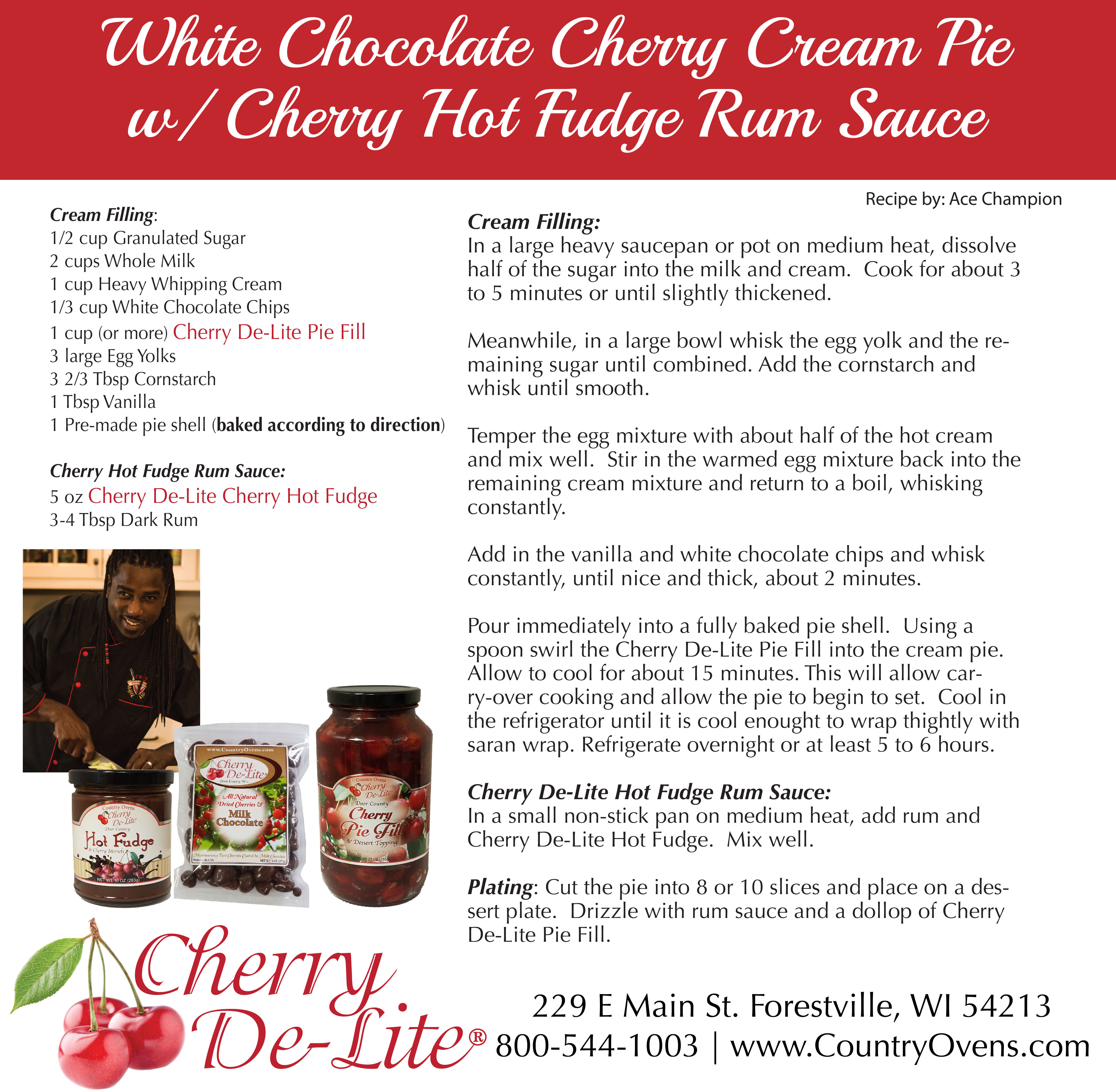 Chef Ace Champion - White Chocolate Cherry Cream Pie w/ Cherry Hot Fudge Rum Sauce Posted by Country Ovens, Ltd. & Ace Champion on Jul 27th 2020 #tart cherry recipe