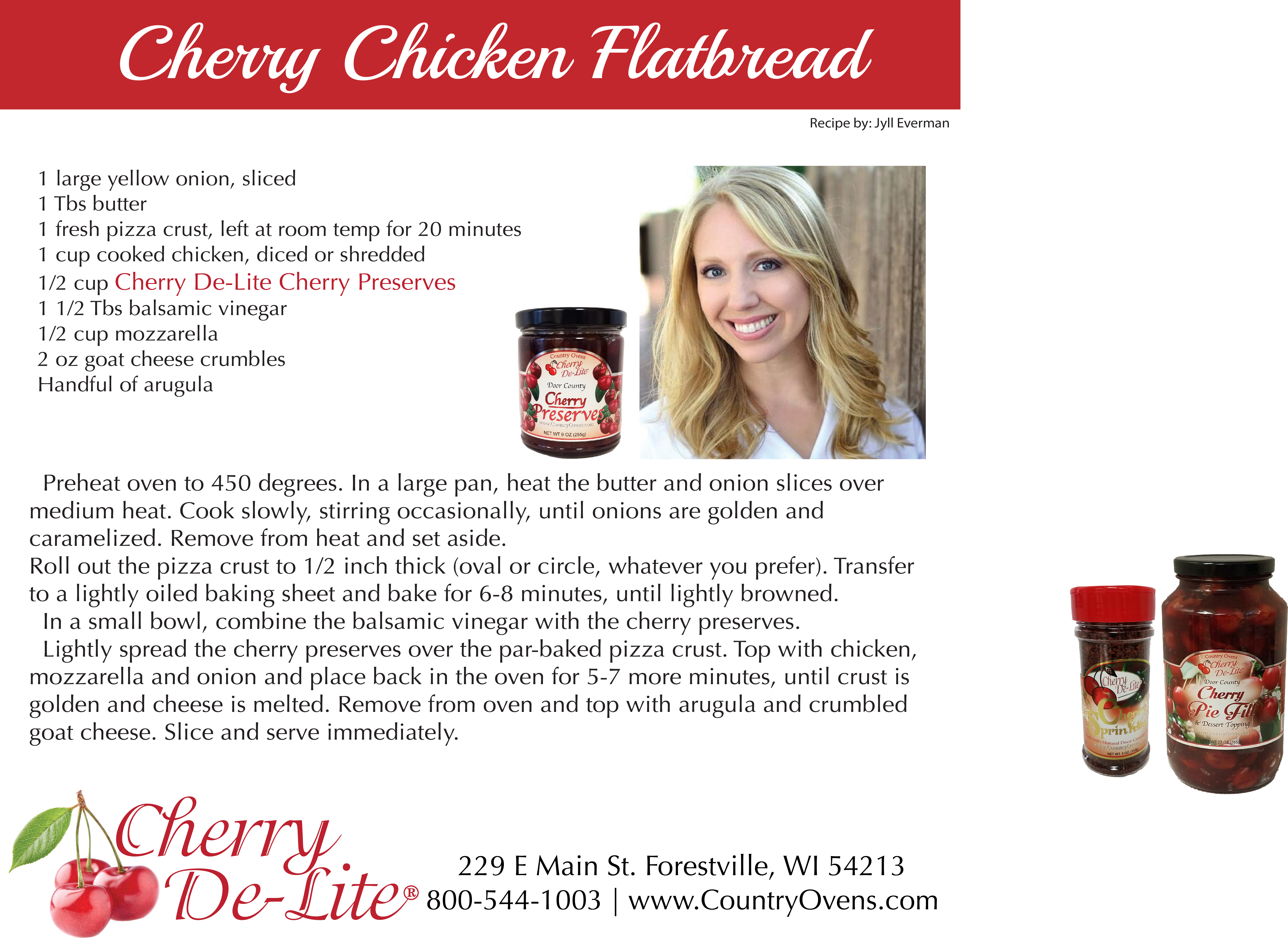 Chef Jyll Everman - Cherry Chicken Flatbread & Cherry Lime Sauce Posted by Country Ovens & Chef Jyll Everman on Jul 29th 2020 Order this Chef Special today! #tart cherry recipe