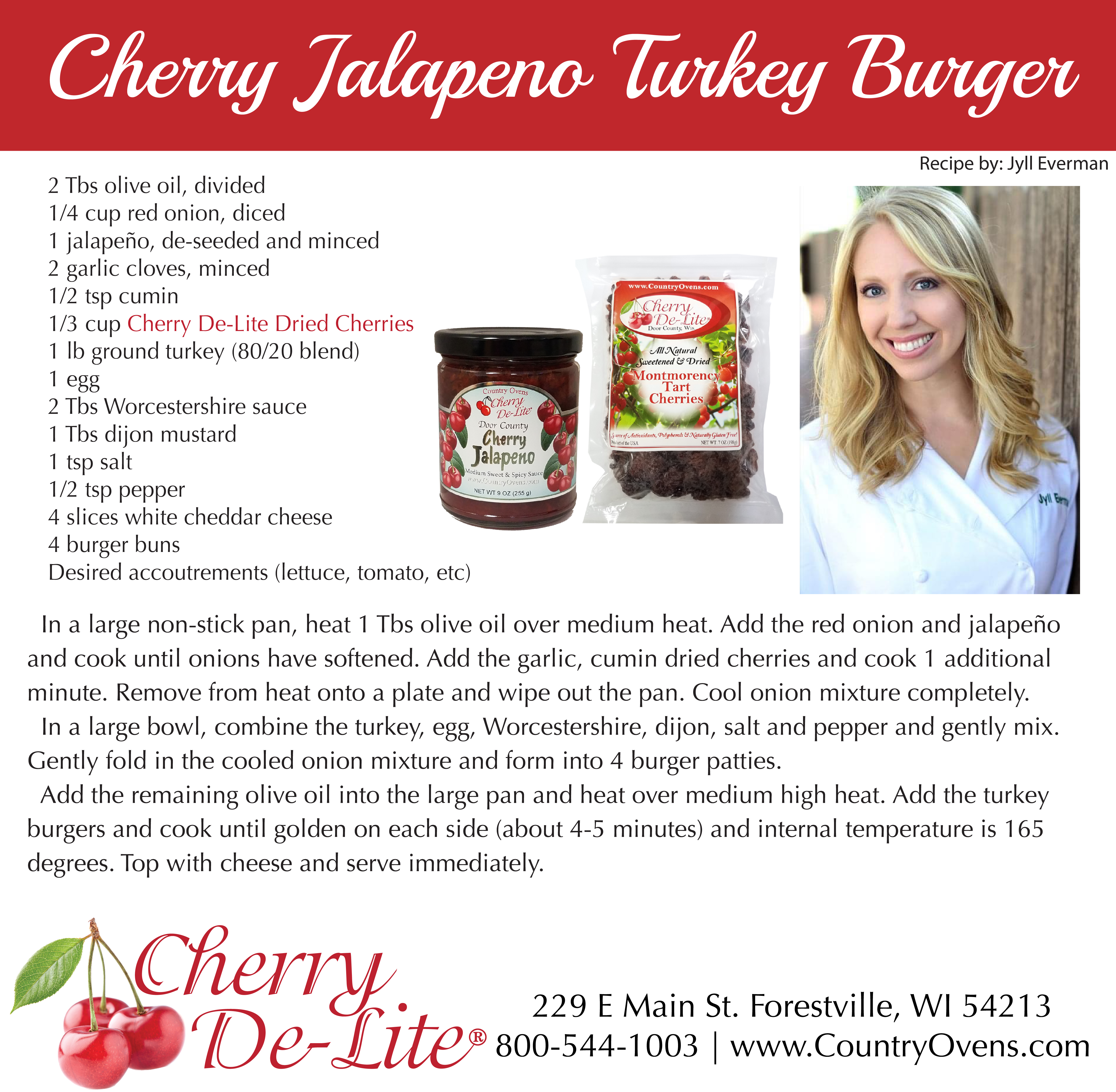 Chef Jyll Everman - Cherry Jalapeno Turkey Burger & Panna Cotta Dessert Posted by Country Ovens & Chef Jyll Everman on Jul 23rd 2020 #tart cherry recipe