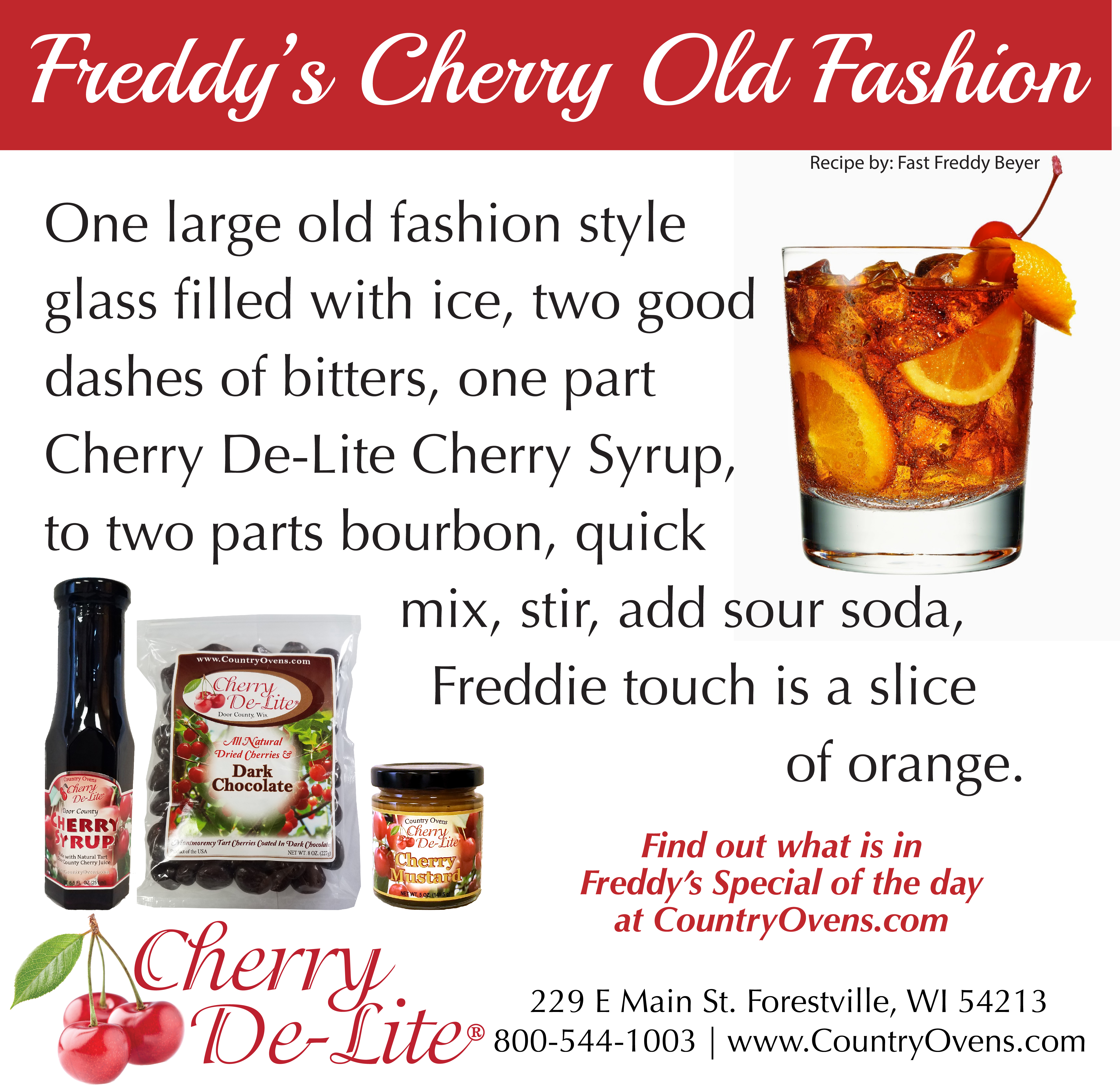 Fast Freddy's Old Fashion Posted by Country Ovens, Ltd & Mad Dog & Merrill on Jul 10th 2020 Order Freddy's Snack Time Special #tart cherry cocktail recipe