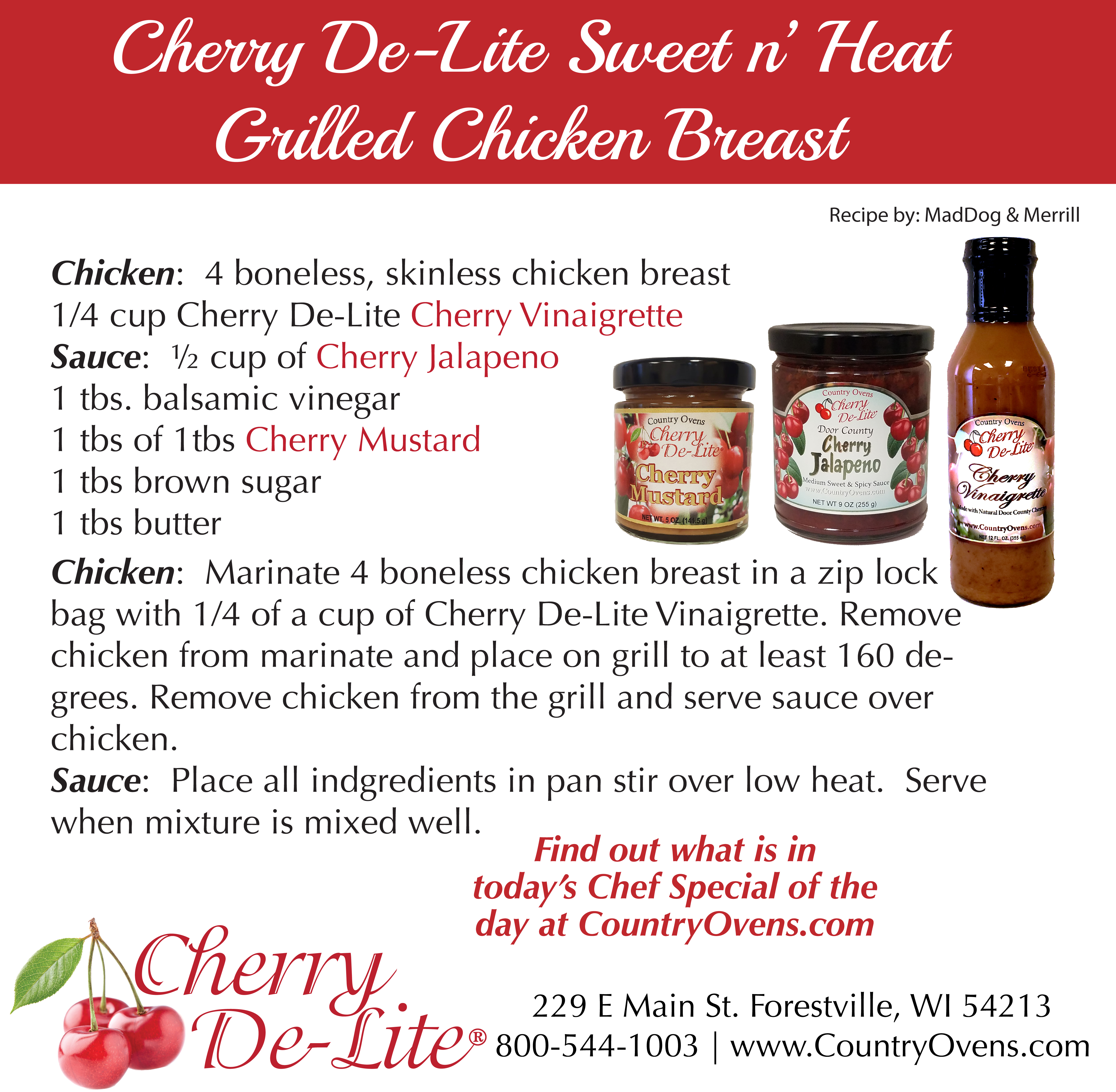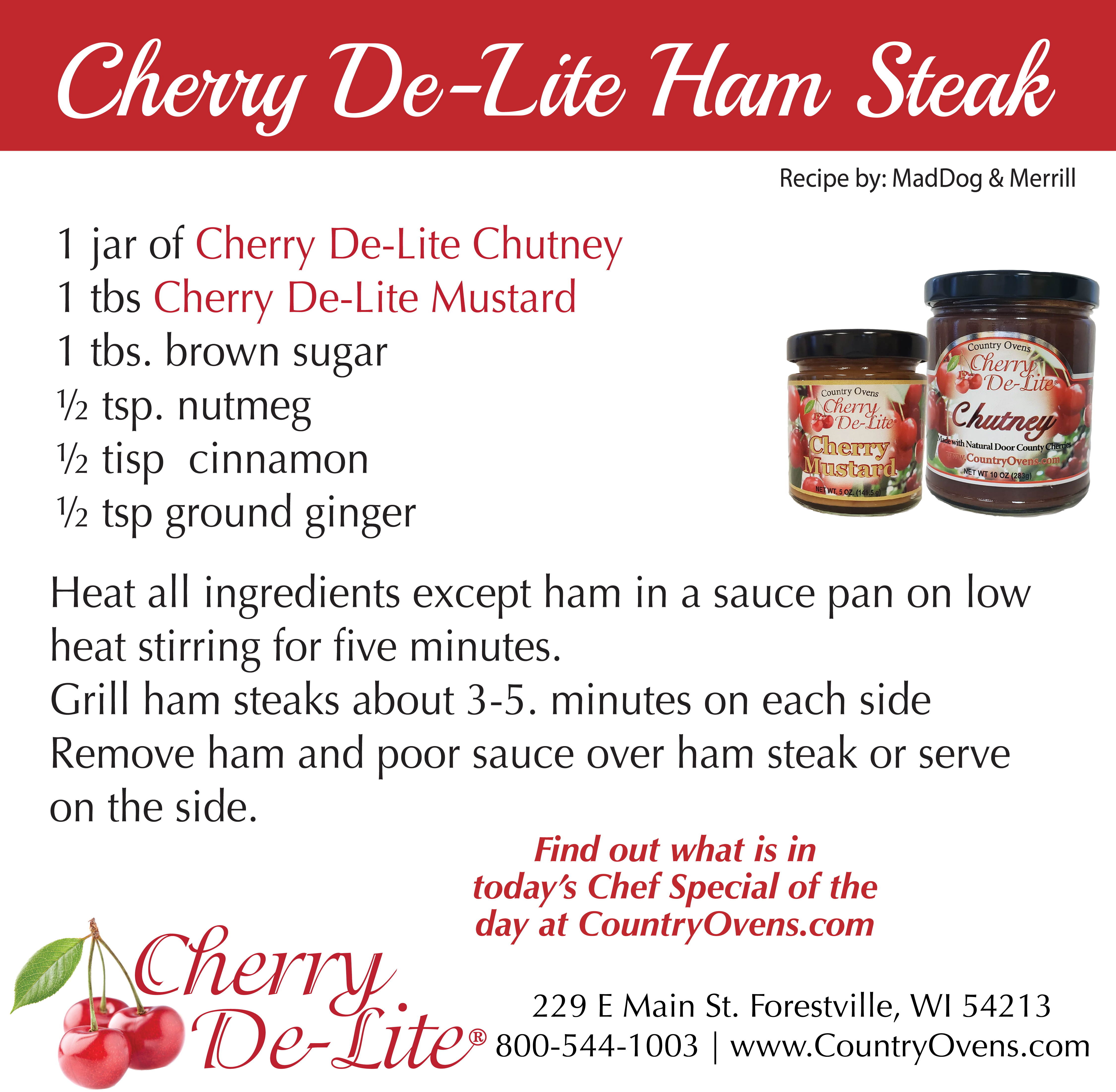 Merrill's Grilled Ham Steak & Sweet N Heat Chicken Posted by Country Ovens, Ltd & Mad Dog & Merrill on Jul 17th 2020 Order Merrill's Chef Special #tart cherry recipe