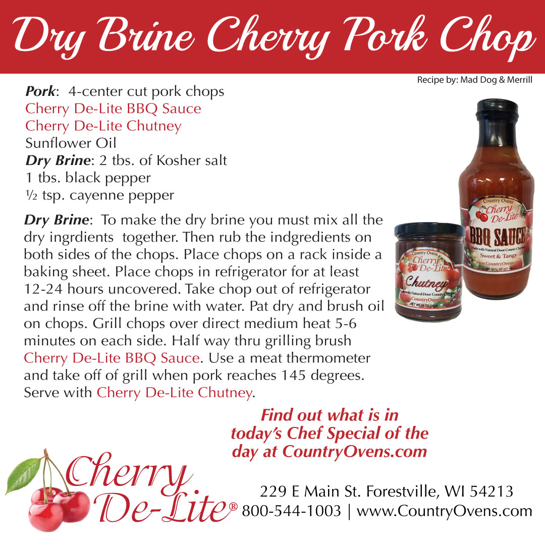 Merrills Pork Chop Chef Special Posted by Country Ovens, Ltd & Mad Dog & Merrill on Jul 10th 2020 Order Merrill's Pork Chop Chef Special of the day! #Tart cherry recipes